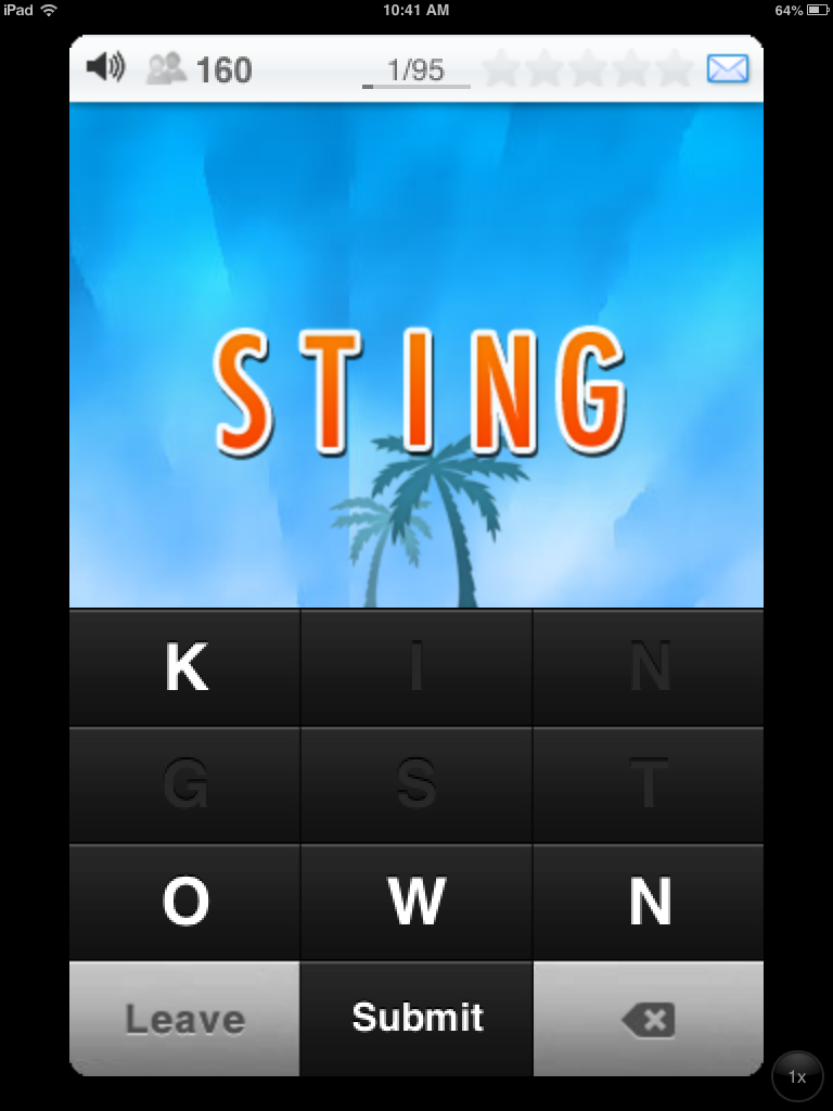 The app provides a game that gives the user practice with spelling and vocabulary. The game has levels and in order to reach the next level, user must create a specific number of words using the letters in the level's word. So in order to move on from the first level, the user must use the letters of kingstown to create new words. When you have punched in letters to make an appropriate word the submit button will light up and the user can then submit the word. After you submit the word, its definition will appear on a banner across the top of the screen. When you create an appropriate number of words for this level, you will be able to move on to the next level.